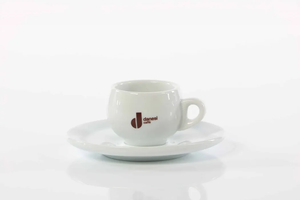 Flach, rund und sehr bauchig ist die Espressotasse Danesi. So ist die goldene Crema des eleganten Espresso der Danesi ESE Pads perfekt sichtbar.