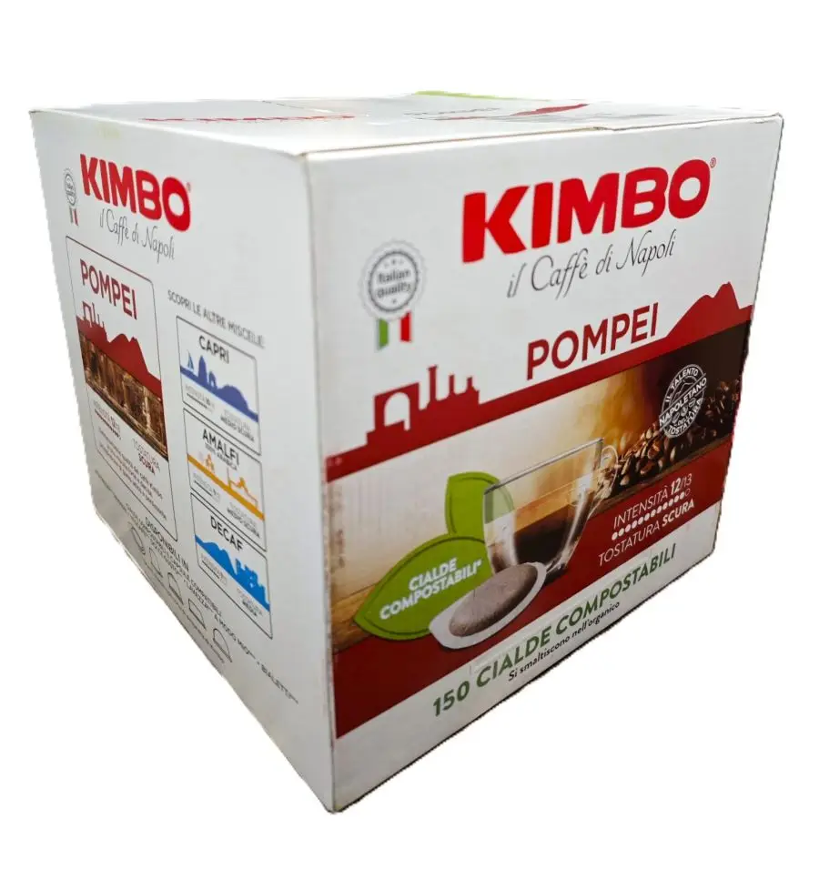 Mit den KIMBO POMPEI ESE Pads legt Caffe Kimbo aus Neapel noch eine Schippe drauf. Dunkel geröstet und kräftig im Geschmack liegt dieser Espresso lecker in der Tasse und nachhaltig am Gaumen.