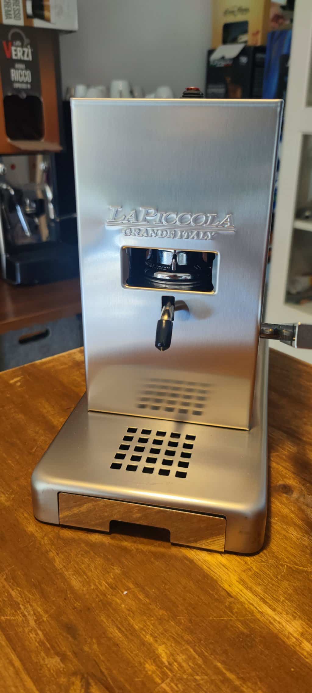 Es wurde lediglich bereits die Schutzfolie entfernt ( und ich habe die Reste noch aus dem Schriftzug geknibbelt ) und 3 Espressi bezogen.
