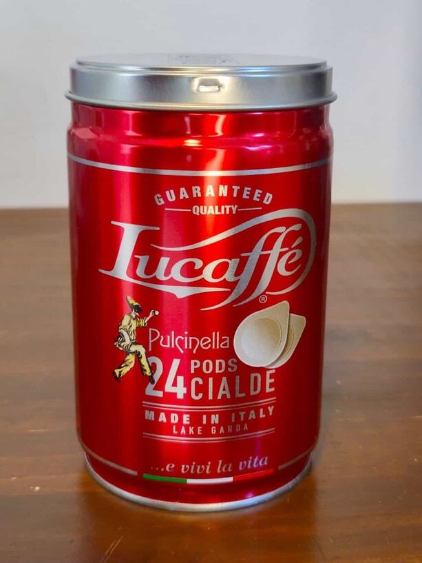 Die schicke Dose der Lucaffe ESE Pads lässt sich später dann auch für viele weitere Dinge prima weiterverwenden.