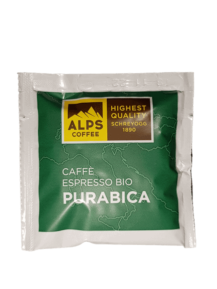 Die Alps Coffee PURABICA ESE Pads sind BIO und Fairtrade zertifiziert.